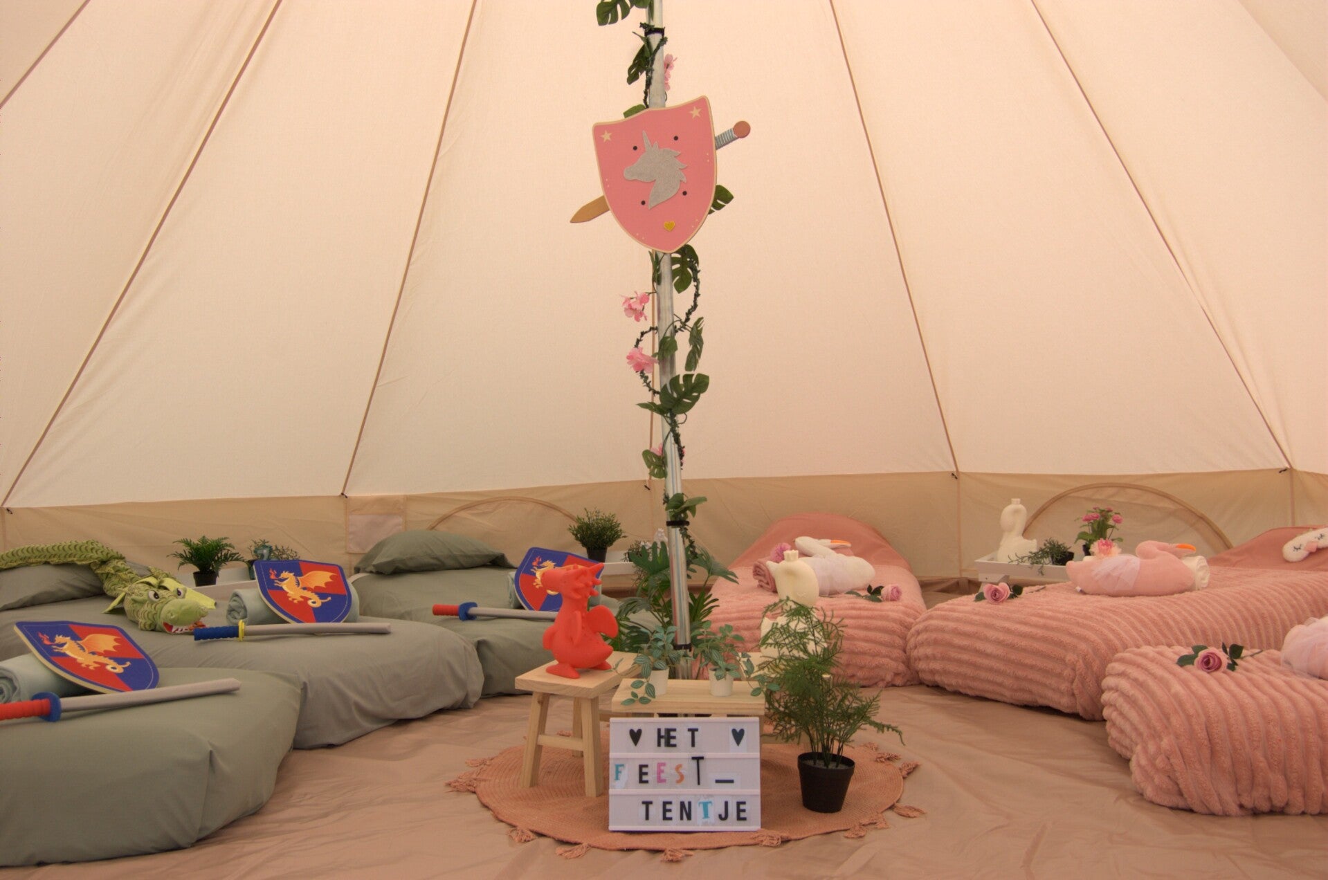 Stap binnen in de wereld van Het Feesttentje en beleef glamping op een magische manier! Met onze thematische glampingtenten creëer je de perfecte sfeer voor een bijzondere nacht vol plezier, ontspanning en avontuur.