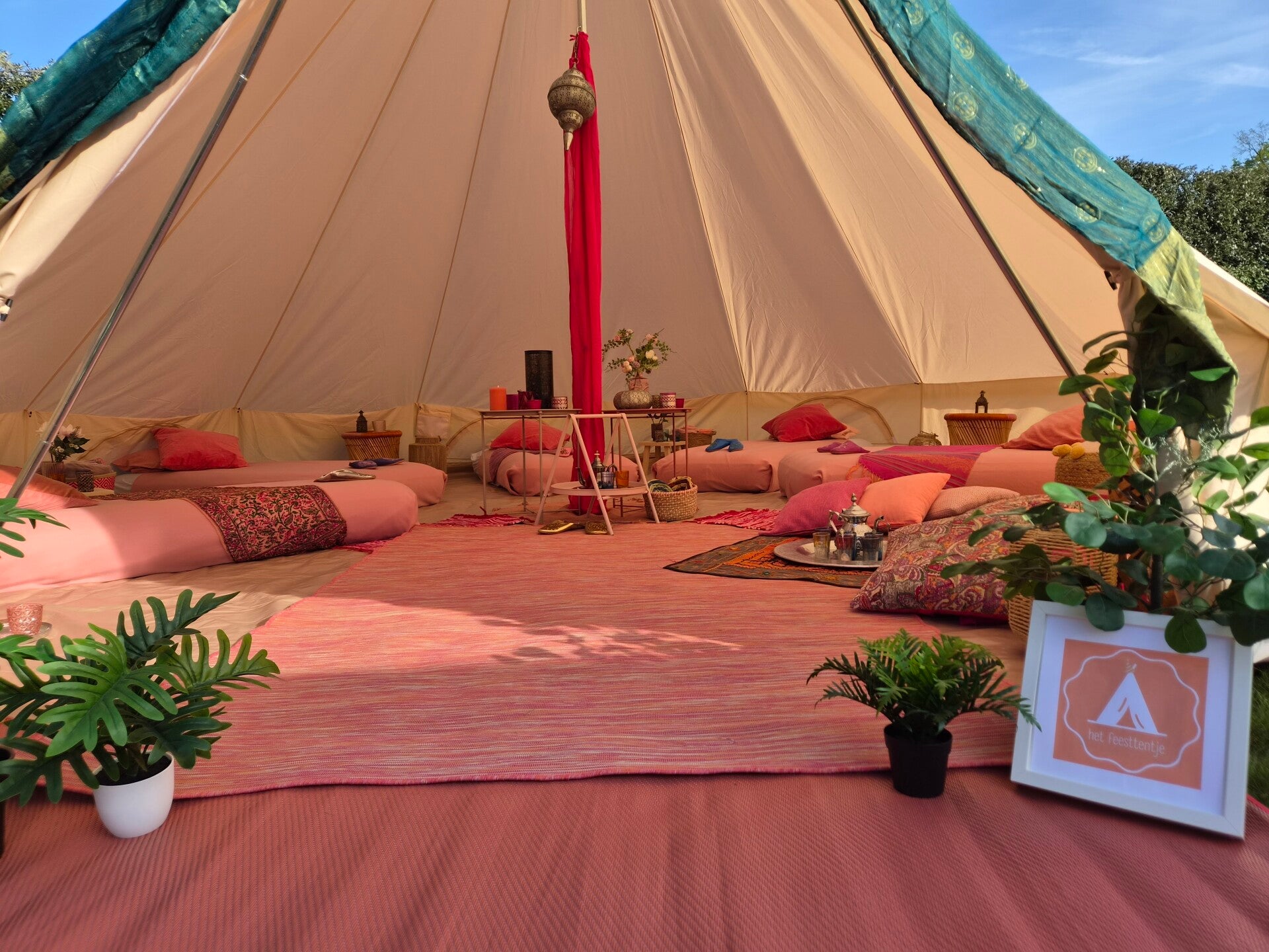 Onze glampingtenten zijn all-in. We bouwen alles op bij jou thuis, richten de tent in en komen achteraf alles afbouwen en ophalen. Tot 25km rijafstand rekenen we geen extra verplaatsingskosten. Woon je toch iets verder? Dan rekenen we €0,25 per extra gereden km. Lees zeker ook de belangrijke info en onze algemene voorwaarden.
